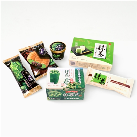 黒蜜と甘納豆の抹茶アイス、抹茶あずきキャンディー、抹茶一口アイスクリーム、抹茶チョコナッツバーなど、